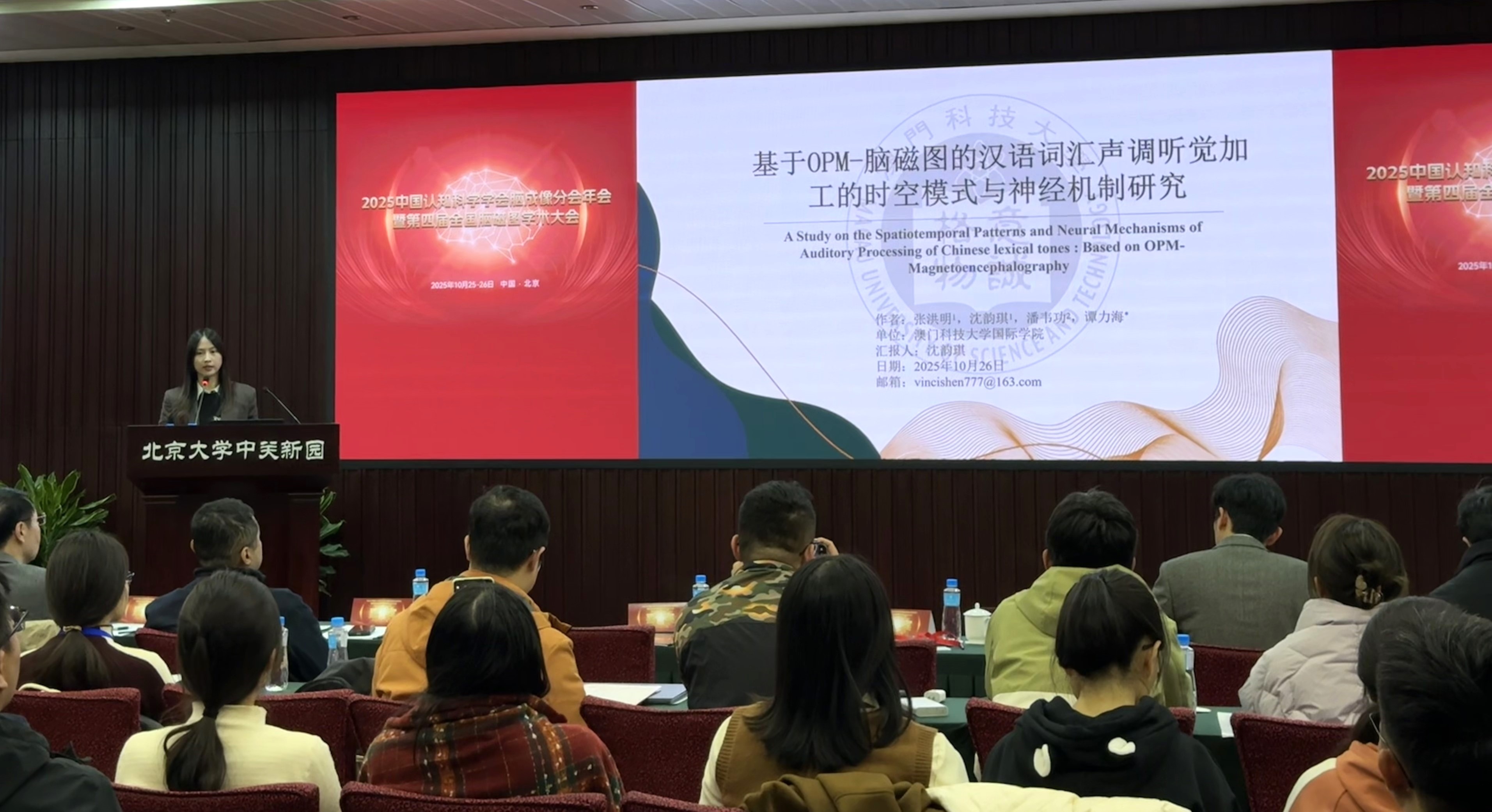澳門科技大學國際學院研究團隊應邀出席2025中國認知科學學會腦成像分會年會暨第四屆全國腦磁圖學術大會,並做大會發言。本屆年會於2025年10月25-26日在北京大學中關新園召開,重點圍繞前沿腦功能成像技術的研發、認知科學基礎研究、癲癇灶定位等臨床應用的最新進展、腦成像數據採集分析、設備研製發展趨勢等,深入探討腦功能成像(包括fMRI和MEG等)技術的研究進展,以及在認知科學領域與腦重大疾病精准診療領域的最新應用。