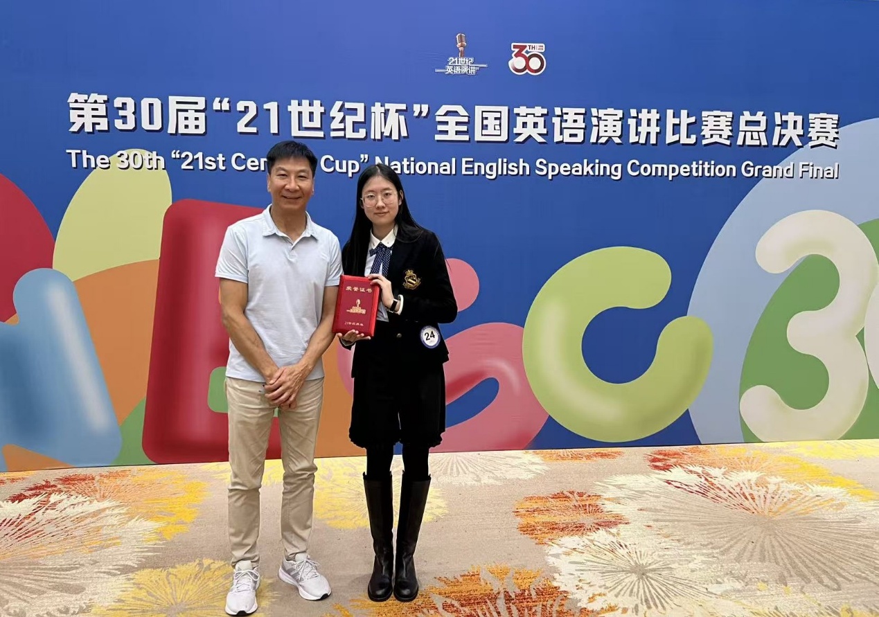On November 13-18, 2025, Yu Jiaziyu, a third-year student of School of Computer Science and Engineering, MUST, won the first prize in the final of the 30th "21st Century Cup" National English Speaking Competition held in Hangzhou. This is also the 18th consecutive year that students from MUST have advanced to the final and won awards.