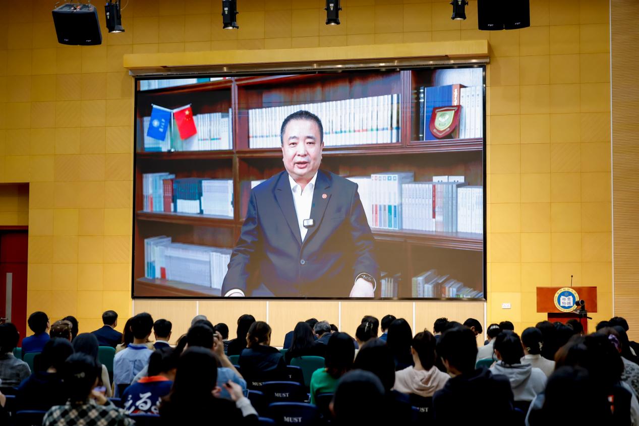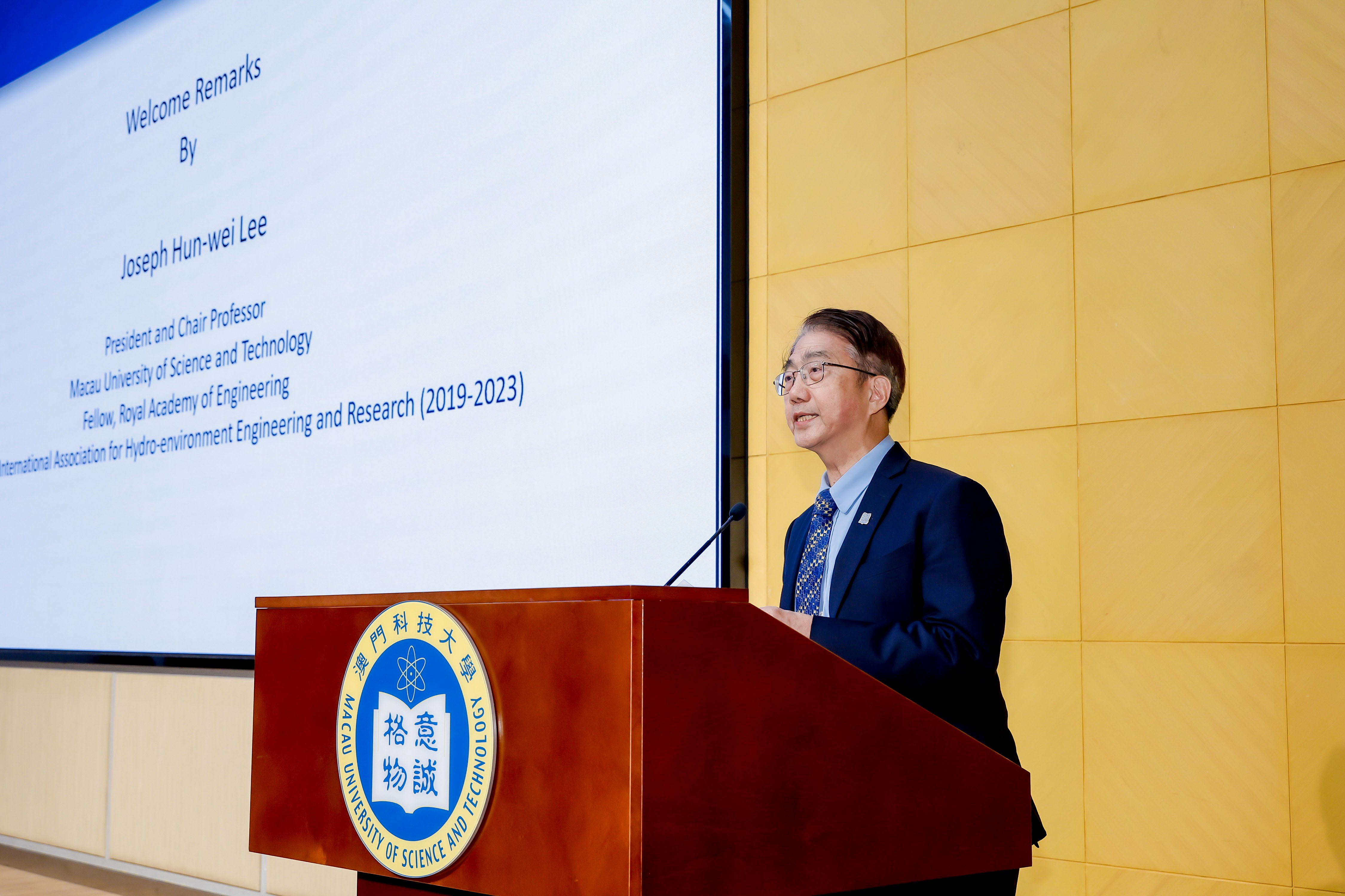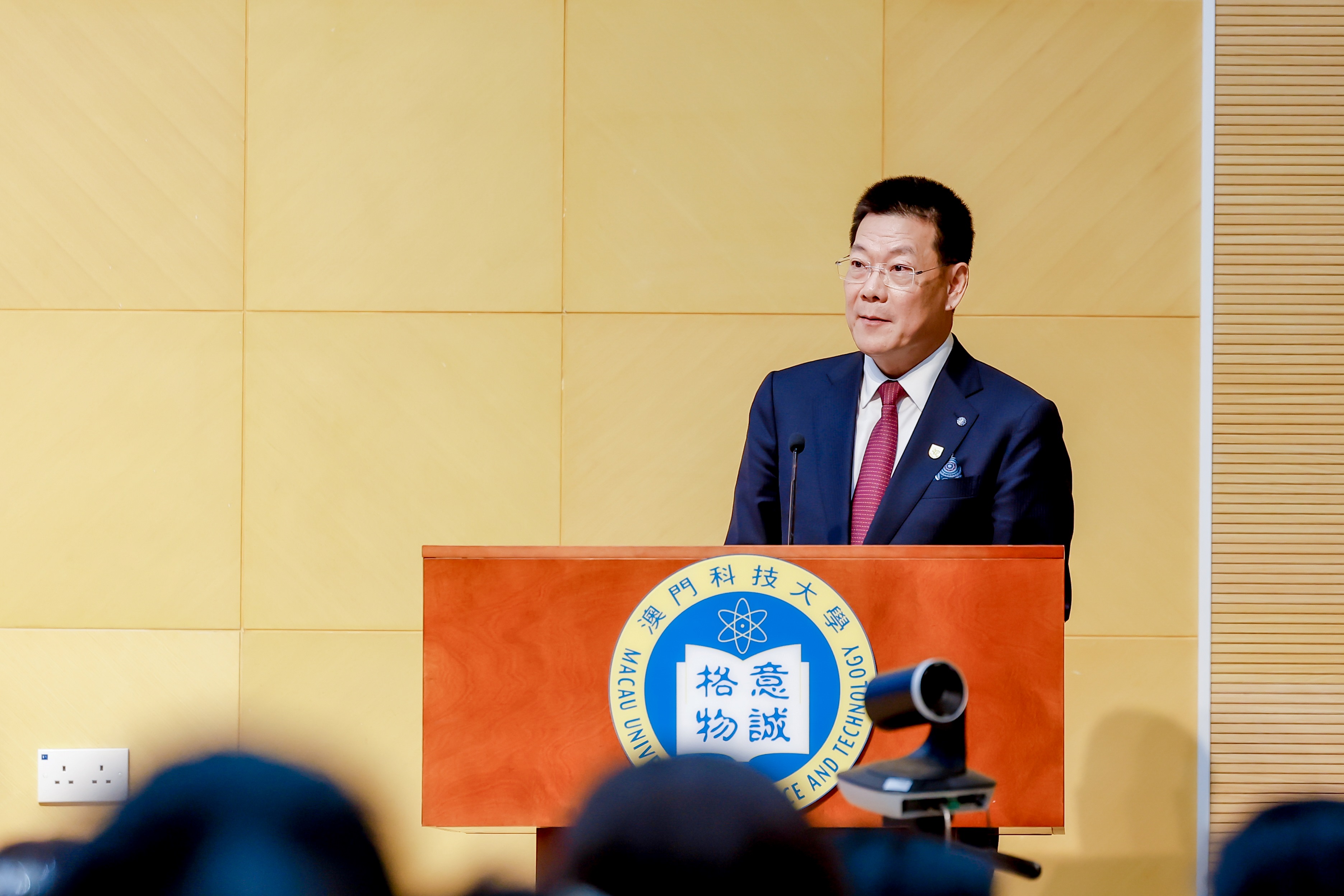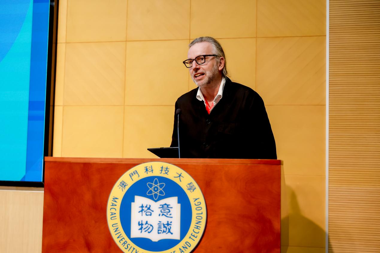 澳科大校長李行偉代表大學對與會嘉賓表示熱烈歡迎,並介紹了澳科大建校二十五年來的發展概況。李校長特別提到,習近平主席於2024年12月19日親臨視察澳科大,對大學在科研與人才培養方面的工作給予了高度肯定。他指出,澳科大雖以科技見長,但始終致力於推動跨學科融合與國際化發展,並透過舉辦QS亞太高等教育峰會及泰晤士高等教育(THE)亞洲大學峰會等國際盛會,提升學術影響力。在教育創新方面,李校長重點介紹了大學全面推行的「AI-MUST」通識課程,該計劃涵蓋「AI與藝術」、「AI與法律」及「AI與倫理」等領域,旨在通過科技與人文的深度結合,培養學生在人工智能時代的創新思維與跨文化勝任力。
