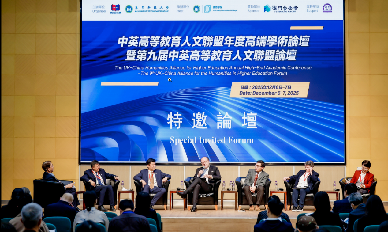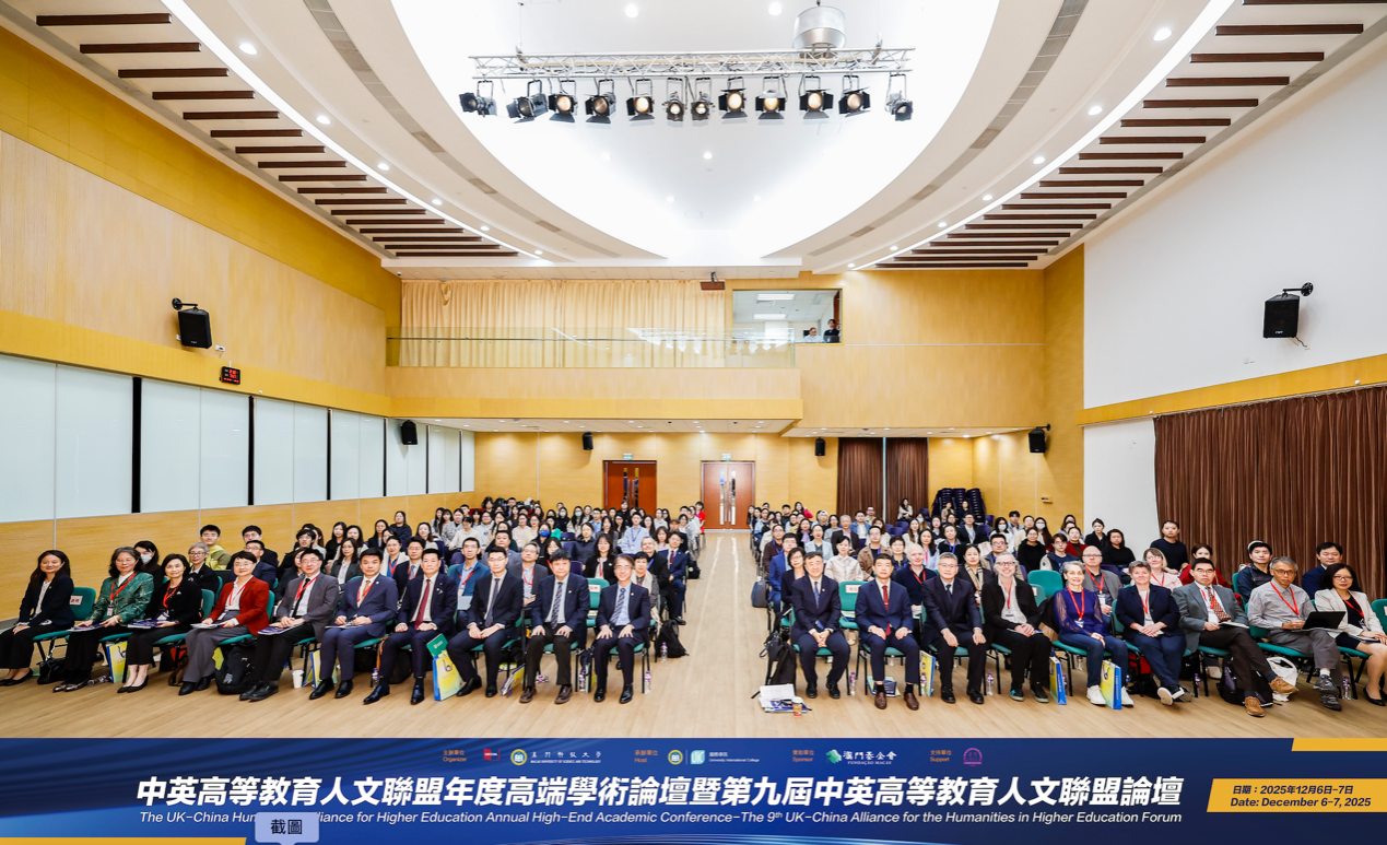 由中英高等教育人文聯盟和澳門科技大學聯合主辦、澳科大國際學院承辦、清華大學和清華大學世界文學與文化研究院支持、澳門基金會贊助的「中英高等教育人文聯盟年度高端學術論壇暨第九屆中英高等教育人文聯盟論壇」,於2025年12月6日上午在澳科大N座禮堂盛大開幕。出席開幕式的嘉賓有:中華人民共和國外交部駐澳門特別行政區特派員公署政策研究室副主任張以楠,中央人民政府駐澳門特別行政區聯絡辦公室教育和青年部調研員李詠樂,澳門教育及青年發展局教育研究及規劃廳代廳長黃超然,中英高等教育人文聯盟主席、清華大學校務委員會副主任楊斌教授,北京外國語大學副校長趙剛教授,澳門中西創新學院校長仲偉合教授,澳科大副校監、校長李行偉講座教授,中英高等教育人文聯盟秘書長、清華大學世文學院院長顏海平教授,論壇組委會主席、澳科大國際學院院長兼教育發展中心總監張洪明講座教授,還有中英兩國的專家學者、政府機構、企業、高校代表、澳科大師生等200多名與會者。