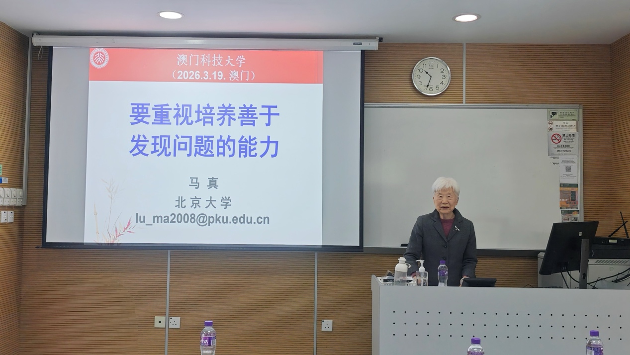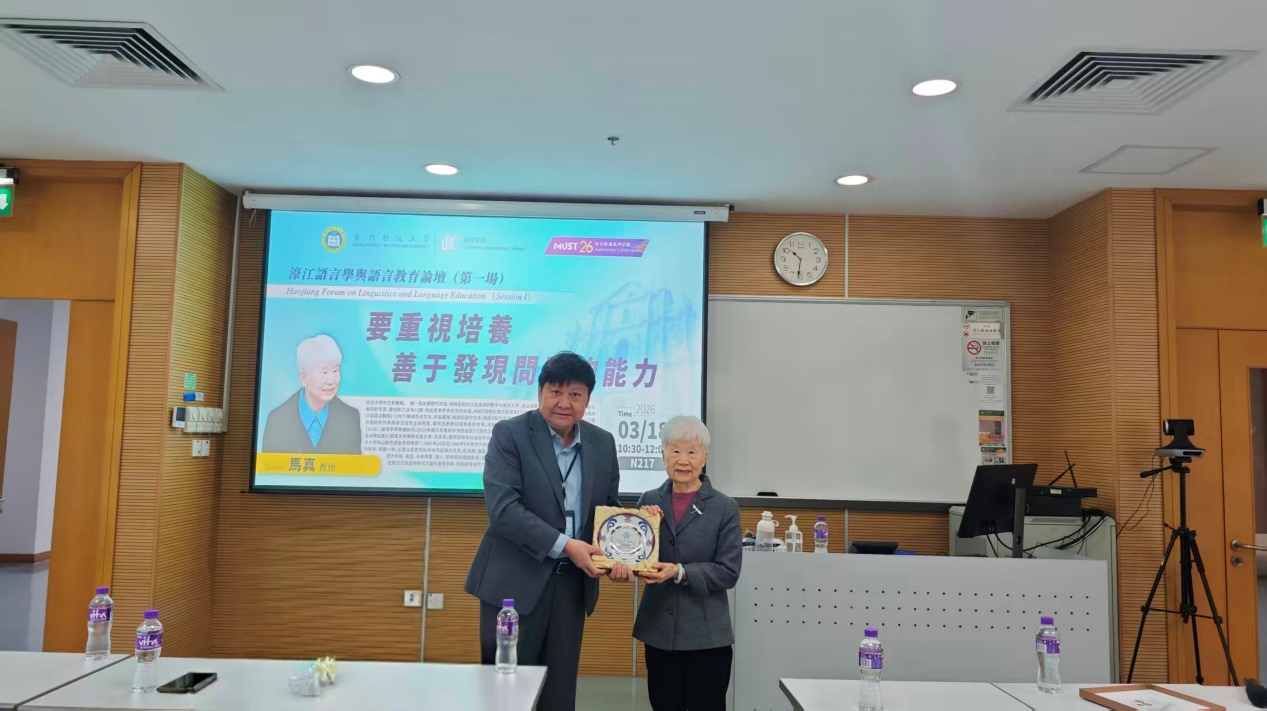 2026年3月18日上午,澳門科技大學建校26週年校慶系列活動之一——國際學院2026年度濠江語言學與語言教育論壇在澳門科技大學N217順利舉行。本年度首場講座由北京大學馬真教授主講,題目為「要重視培養善於發現問題的能力」。講座由國際學院研究生課程主任尤舒翔助理教授主持,國際學院院長、大學教育發展中心總監張洪明講座教授向馬真教授贈送紀念品並合影留念。