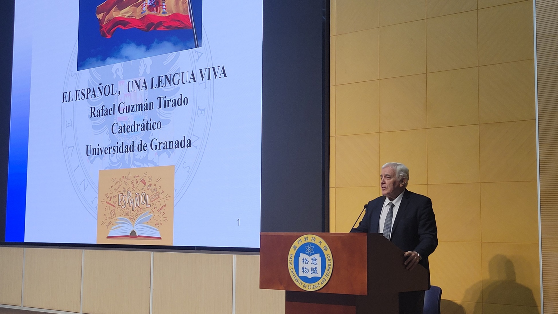 2026年4月13日,澳門科技大學國際學院西班牙語專業隆重舉辦「西班牙語日」活動。本次活動包括2025/2026西班牙駐香港總領事館語言文化推廣獎學金頒獎儀式與第十一屆塞萬提斯戲劇節,並邀請來自西班牙格拉納達大學的Rafael Guzmán Tirado教授為全體西班牙語專業師生帶來專題演講。是次活動旨在表彰優秀學生、促進西班牙語言文化交流,並展示教學成果,現場氣氛熱烈。